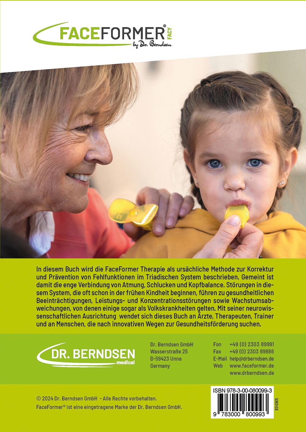 In diesem Buch wird die FaceFormer-Therapie als ursächliche Methode zur Korrektur und Prävention von Fehlfunktionen im Triadischen System beschrieben. Gemeint ist damit die enge Verbindung von Atmung, Schlucken und Kopfbalance. Störungen in diesem System, die oft schon in der frühen Kindheit beginnen, führen zu gesundheitlichen Beeinträchtigungen, Leistungs- und Konzentrationsstörungen sowie Wachstumsabweichungen, von denen einige sogar als Volkskrankheiten gelten. Mit seiner neurowissenschaftlichen Ausrichtung wendet sich dieses Buch an Ärzte, Therapeuten, Trainer und an Menschen, die nach innovativen Wegen zur Gesundheitsförderung suchen.