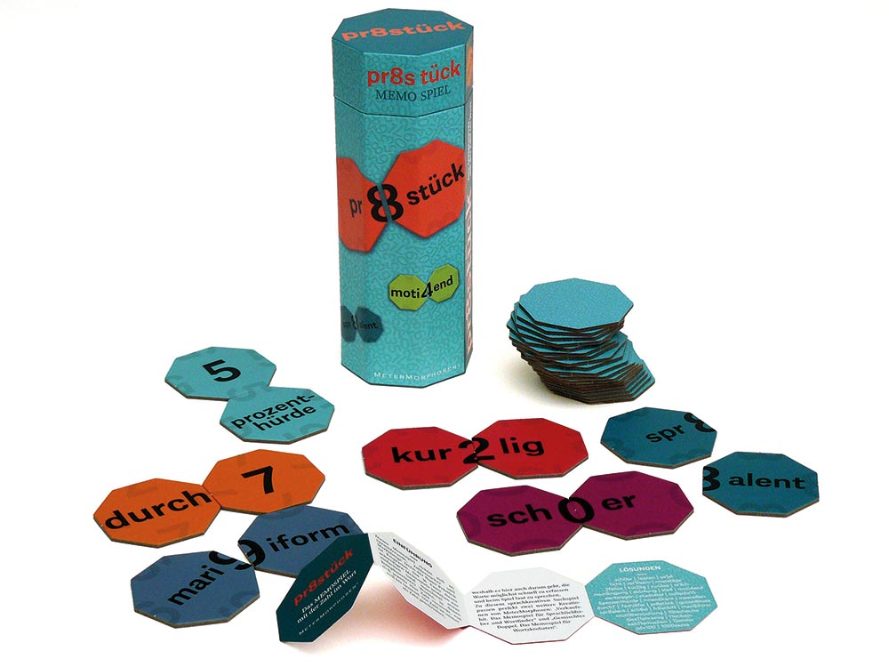 Pr8stück: Ein Memospiel mit 36 versteckten Zahlen in 36 Worten, die auf jeweils zwei Karten zusammengesucht werden müssen.