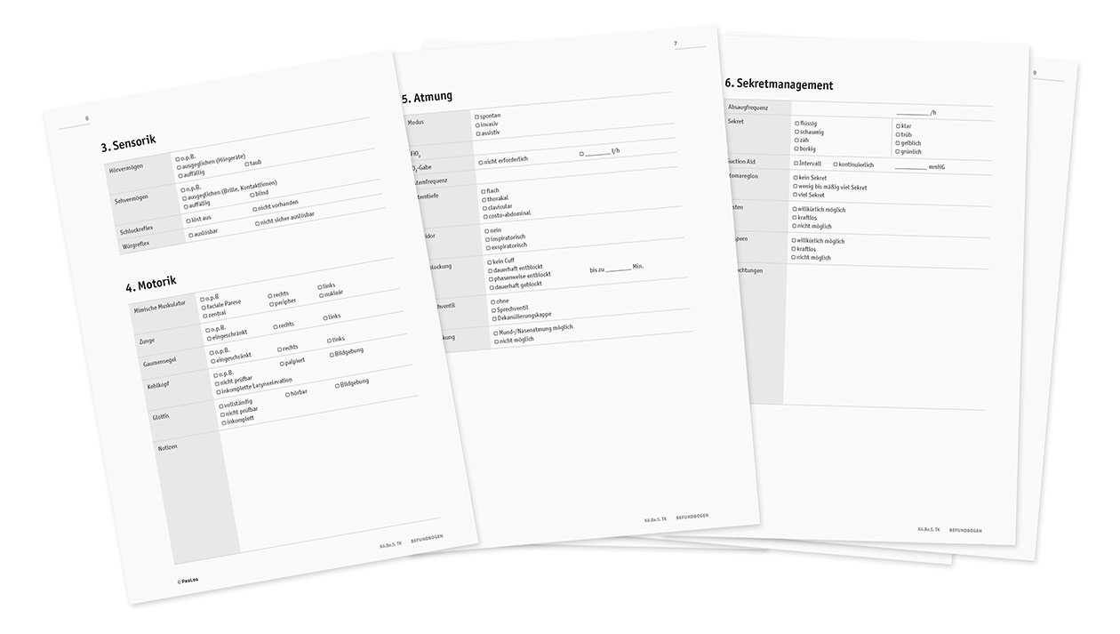 Das Kö.Be.S.-System komplettiert sich: Mit diesem neuen Modul ist nun auch eine systematische Befundung bei Patienten mit Trachealkanülen möglich. Es gestattet eine umfängliche Dokumentation von Beobachtungs- und Anamnesedaten in den Bereichen Kognition, Sensorik, Motorik, Atmung, Sekretmanagement, Trachealkanüle, Schluckdiagnostik und Ernährung und erleichtert somit auch die Kommunikation zwischen Therapeutin, Ärzten und Pflegepersonal.