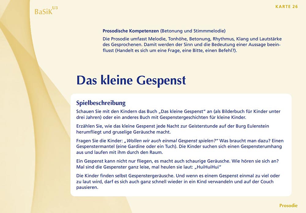 Bei allen Spielideen gilt: Freude am Sprechen ist die wichtigste Voraussetzung für einen gelingenden Spracherwerb, ebenso wie die Freude am gemeinsamen Austausch mit anderen und am Verstandenwerden. Die Spielideen sollen die Beziehung zum Kind stärken und den Zugang zur Sprache erleichtern.