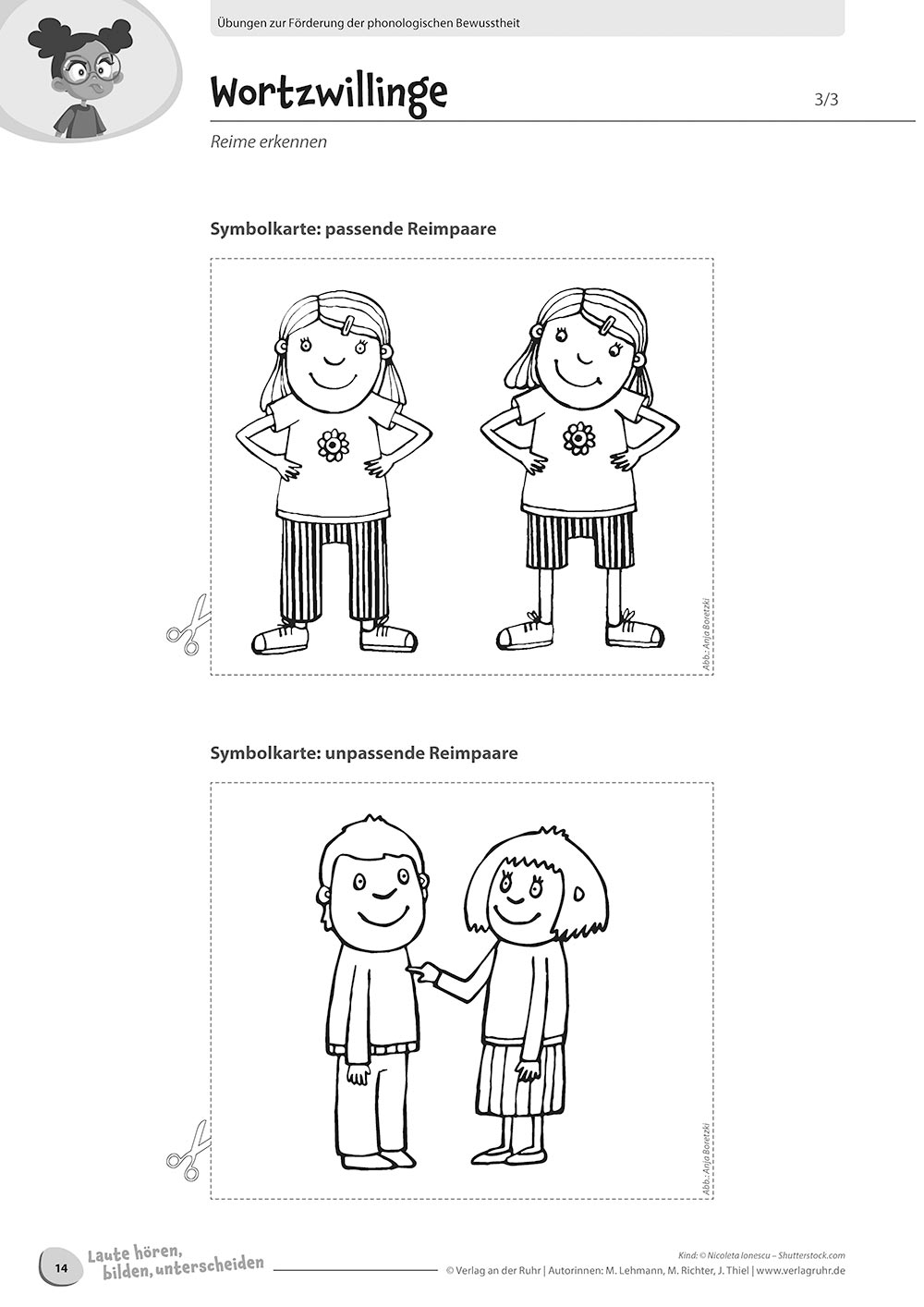 Diese kindgerechten und praktischen Übungen und Spiele zur Sprachförderung und Lautbildung fördern die korrekte Aussprache von Lauten, Lautverbindungen, Reimen und Silben und das bewusste Hören von Lauten in Wörtern. So wird die Grundlage für die Phonologische Bewusstheit und den Schriftspracherwerb gelegt.