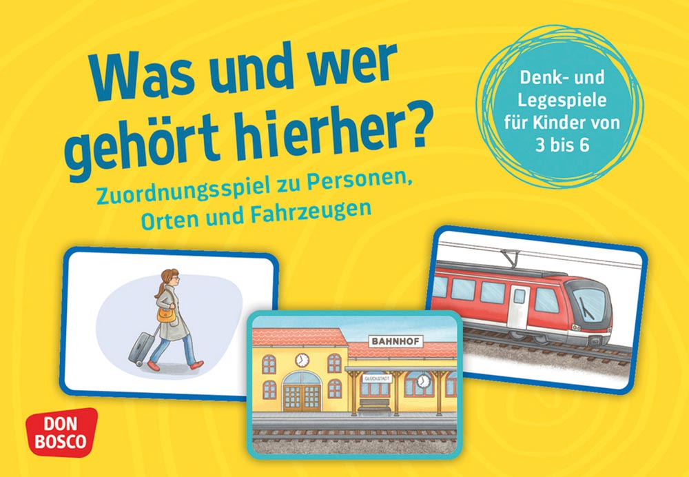 Ein Zuordnungsspiel zu Personen, Orten und Fahrzeugen. Wohin fährt der Schulbus? Wo könnte eine Waschmaschine stehen? An welchem Ort tragen Kinder Badekleidung? Bei diesem Zuordnungsspiel geht es um Beispiele aus der kindlichen Alltagswelt: Kinder zwischen drei und sechs Jahren ordnen Gegenstände und Personen bestimmten Orten zu, die sie kennen. Das trainiert spielerisch das assoziative Gedächtnis und dient zugleich der Sprachförderung.