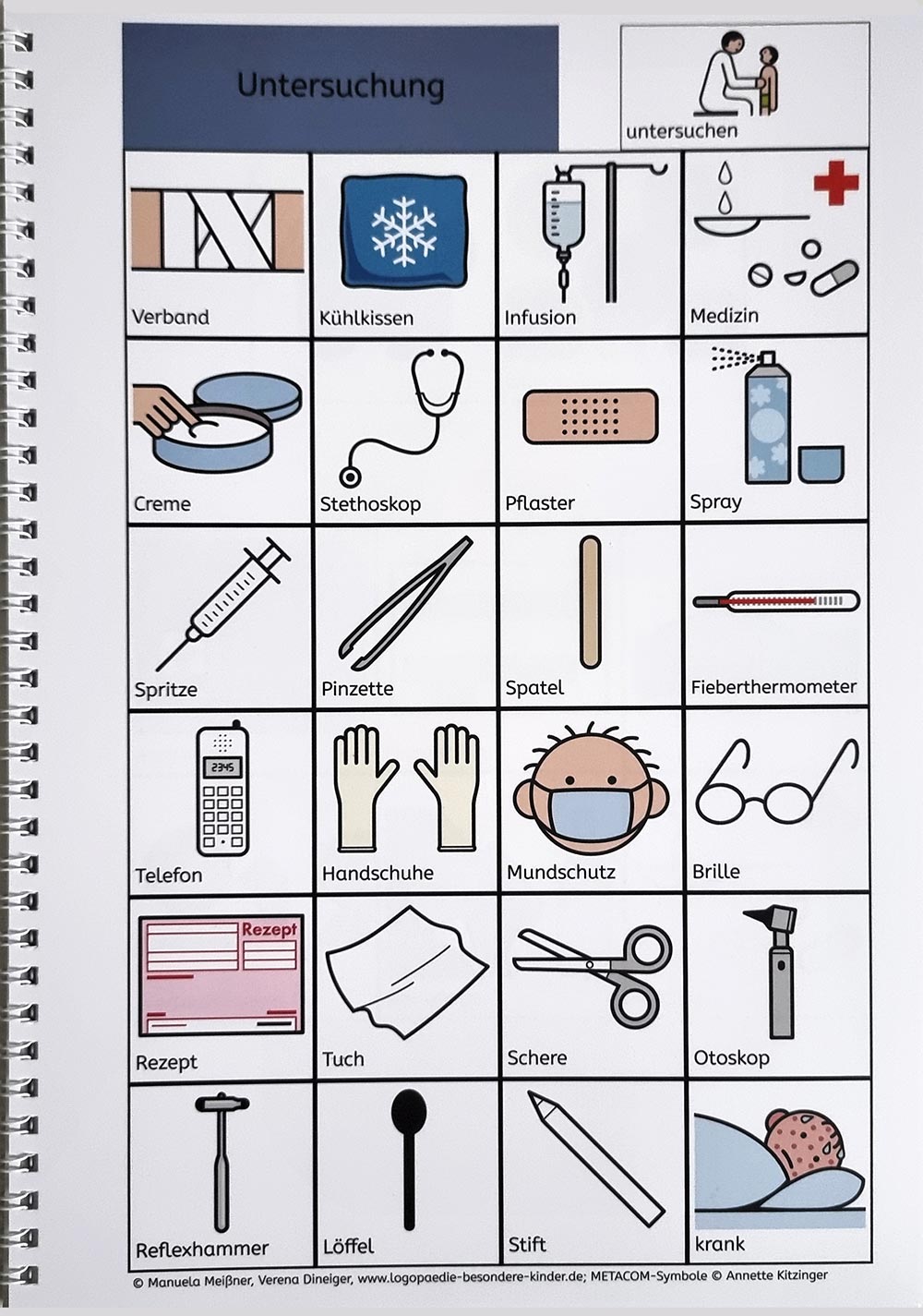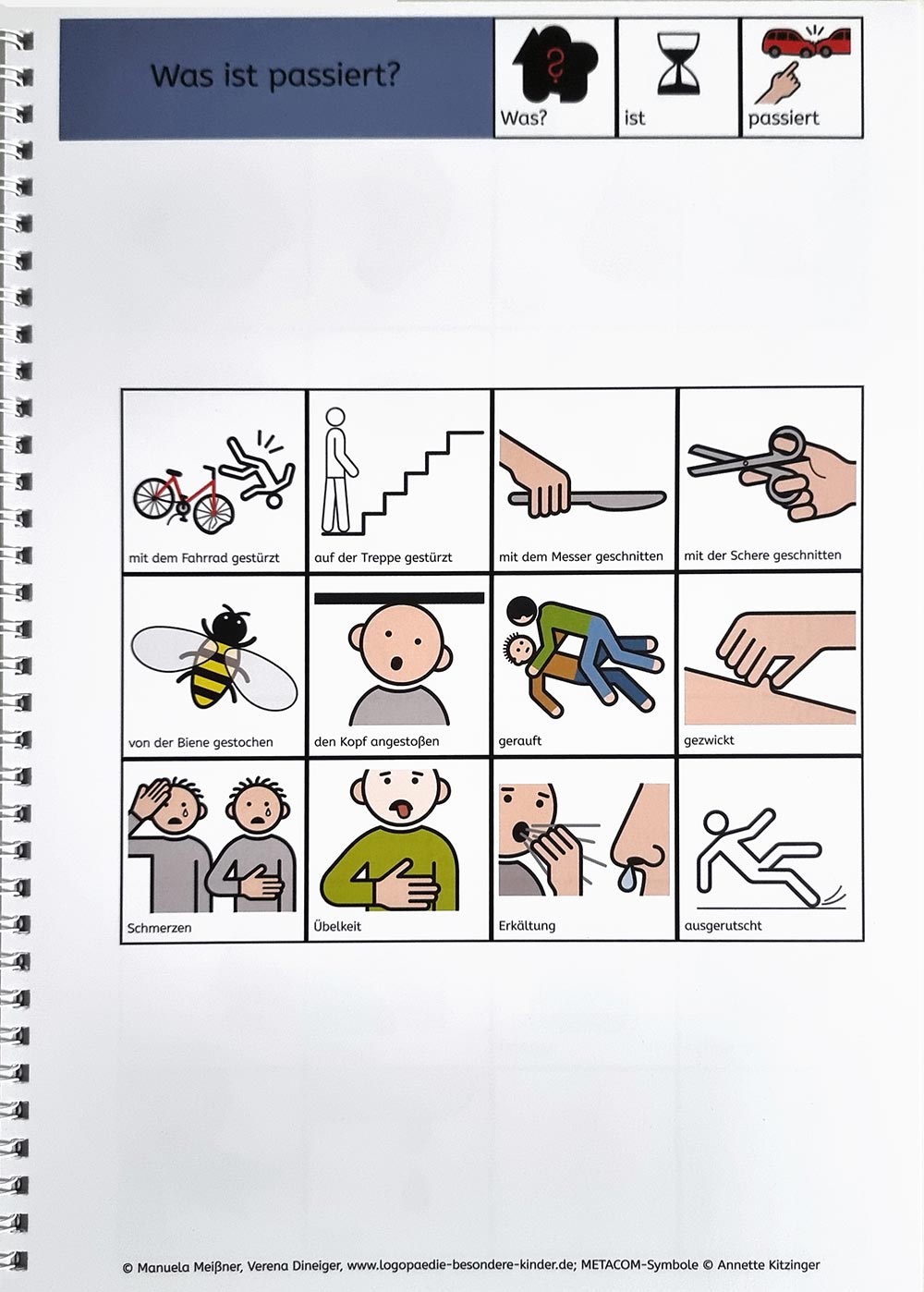 Die Bücher sind alle nach einem ähnlichen Prinzip aufgebaut: Sie enthalten METACOM Symbole ©Annette Kitzinger, orientieren sich dabei an der App Metatalk.de und enthalten die gleichbleibende Kernwortschatzleiste.