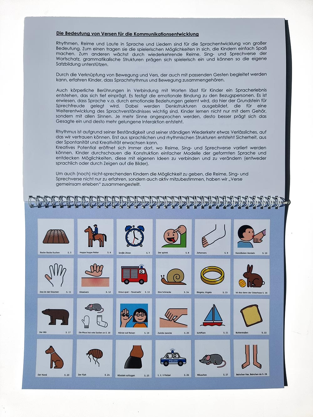 Eine genaue Anleitung finden Sie auch im Büchlein, insbesondere auch Informationen über die Bedeutung von Versen für die Kommunikationsentwicklung.